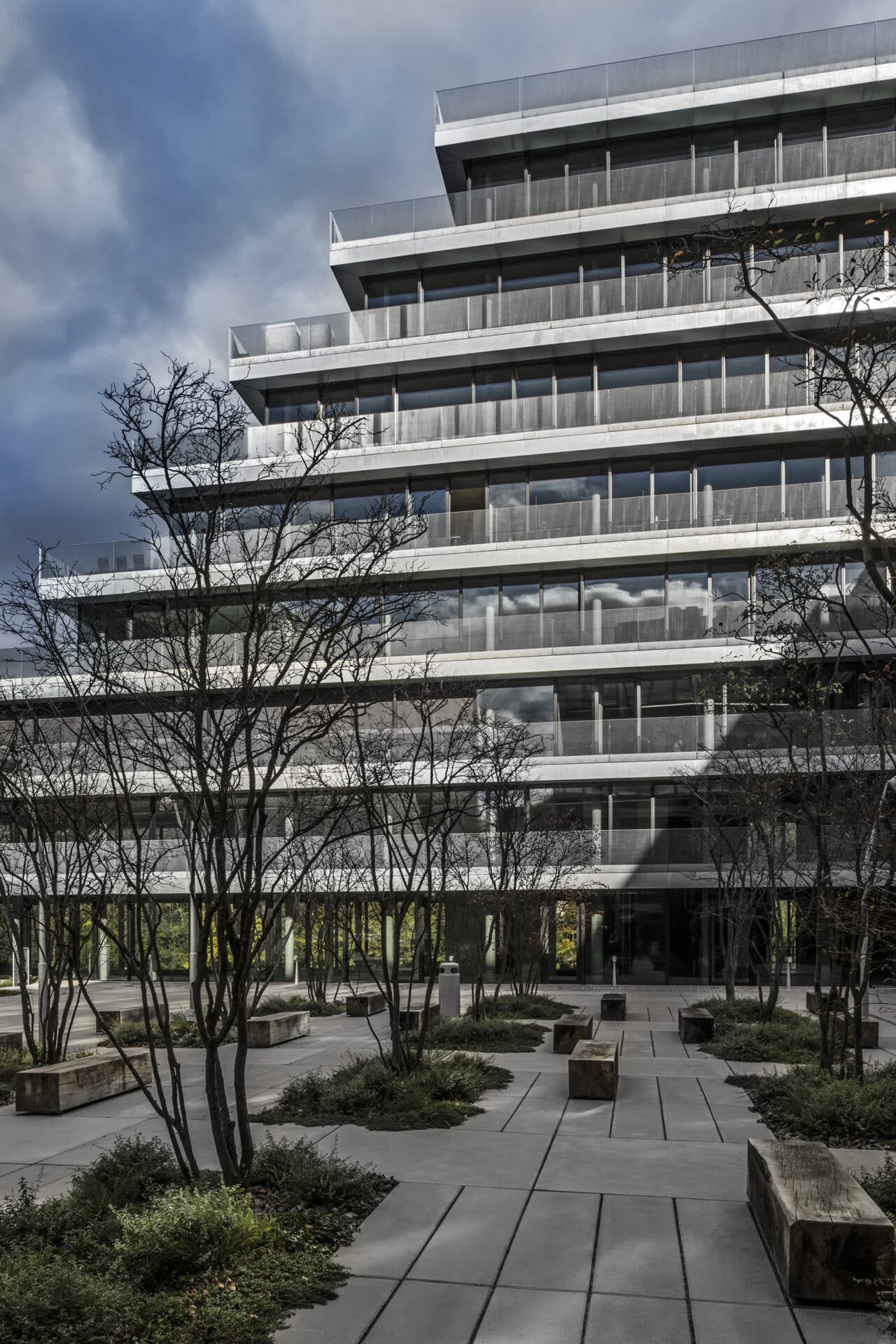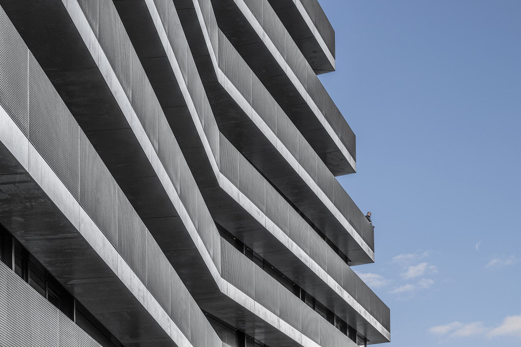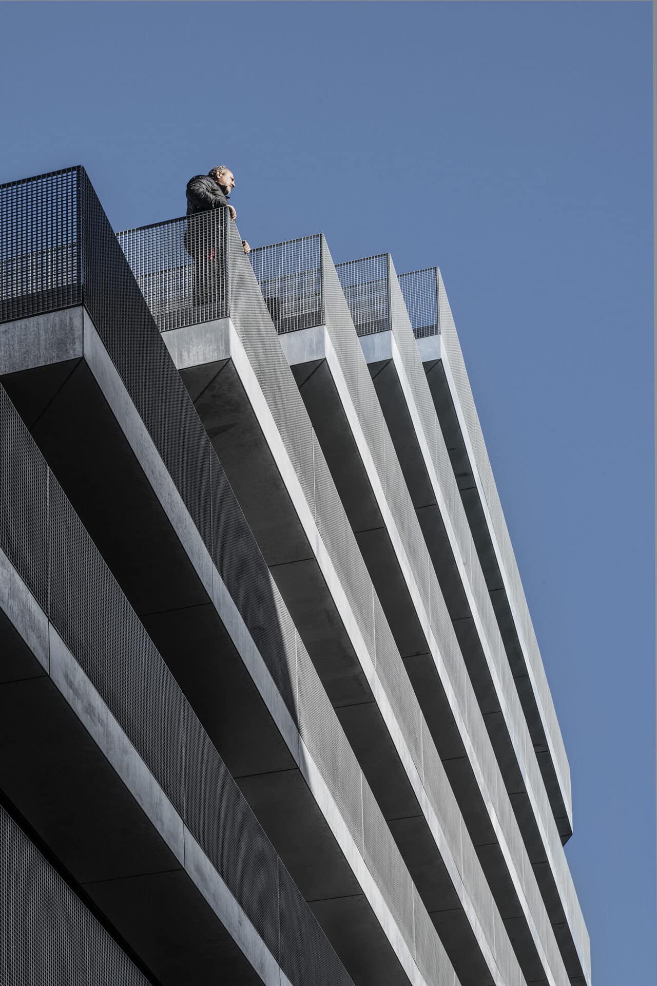 L’immeuble de bureaux berlinois « The Terrace », situé au bord de la Spree, se caractérise avant tout par ses balcons périphériques en tôle lisse galvanisée et en caillebotis. Ceux-ci sont placés devant les vitrages à hauteur de plafond avec des portes coulissantes et créent l’impression de niveaux superposés et suspendus en terrasse.