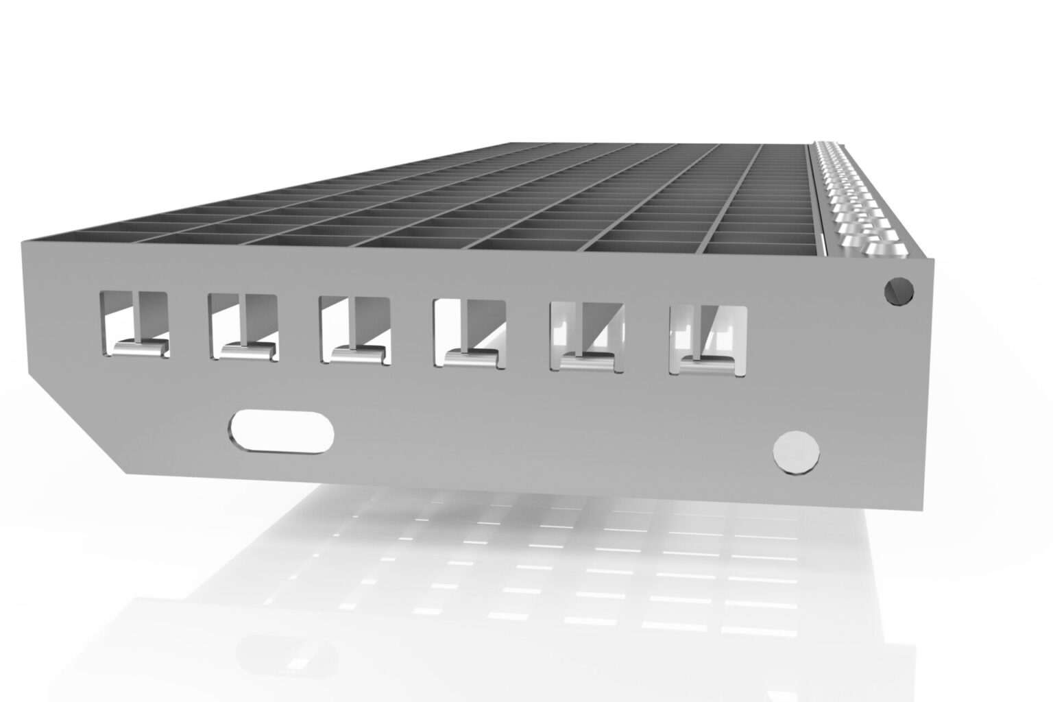 Panelen vastgelast aan de zijkanten van stappen / trappen met boringen voor bevestiging aan een trapboom.
