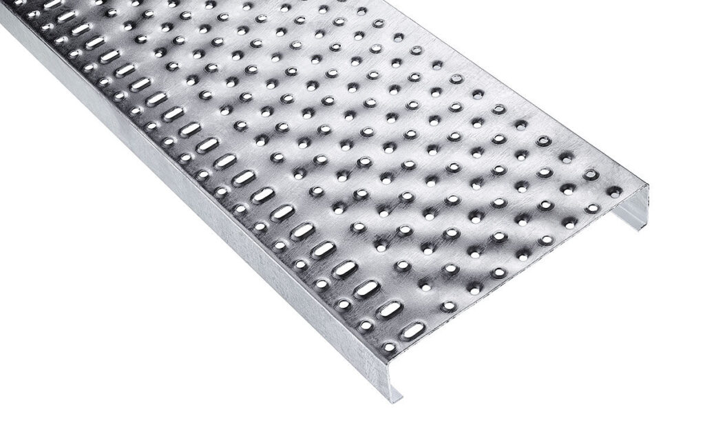 Der Blechprofilrost Typ BN-O33 „Noppe offen“ bietet, durch die nach oben und unten gedrückten Noppen mit einem Lochdurchmesser von 8 mm eine hervorragende Standsicherheit und über die Ablauflöscher eine gute Drainage.