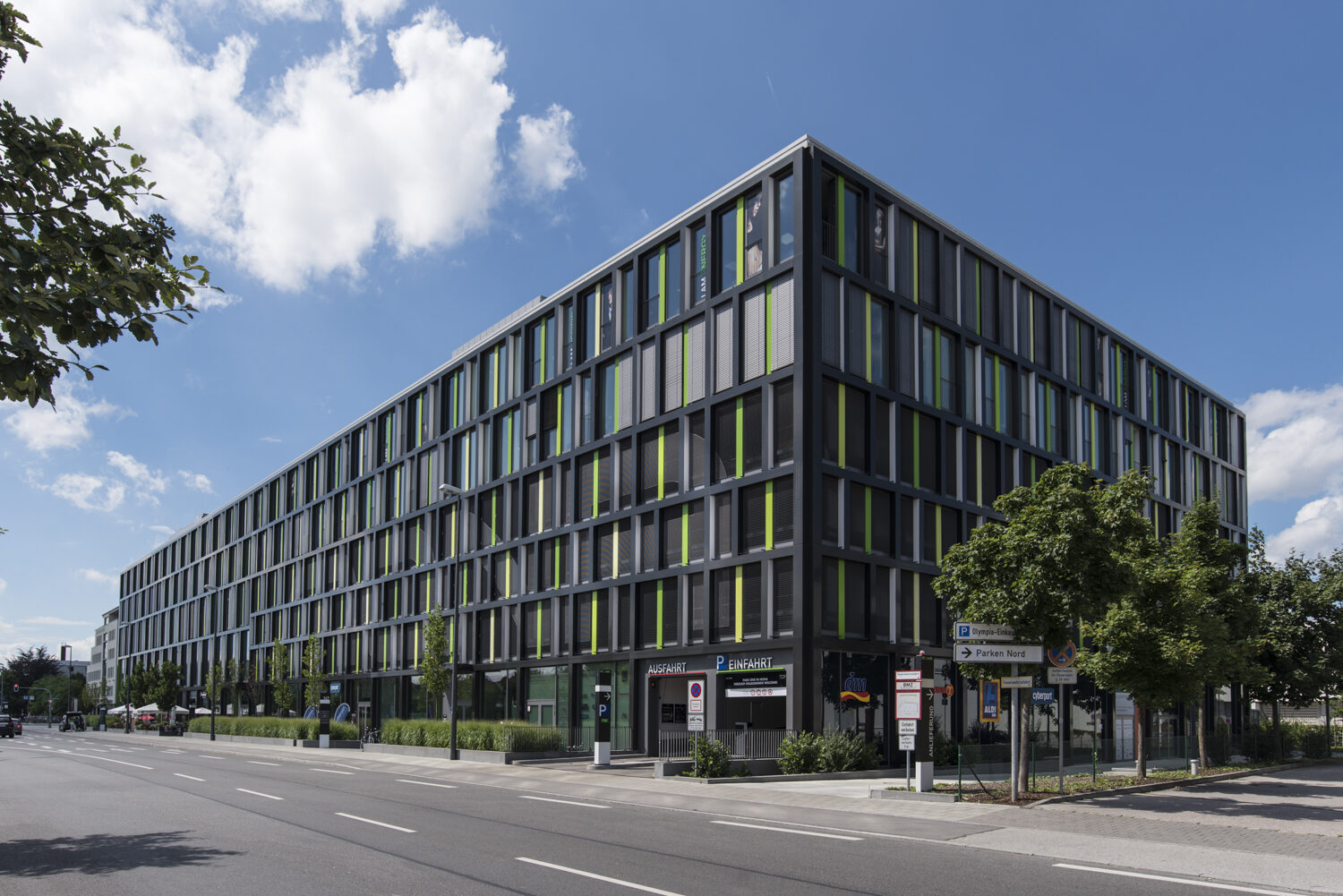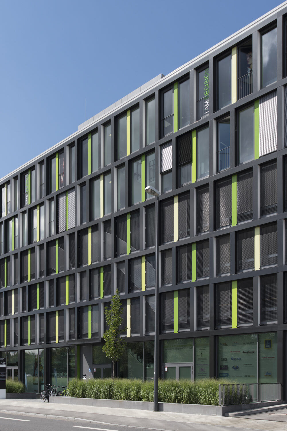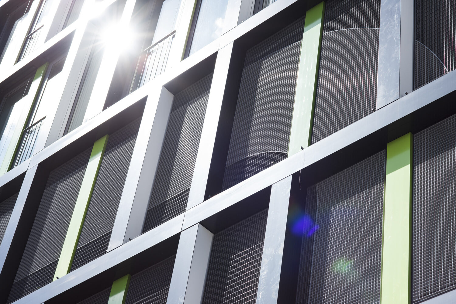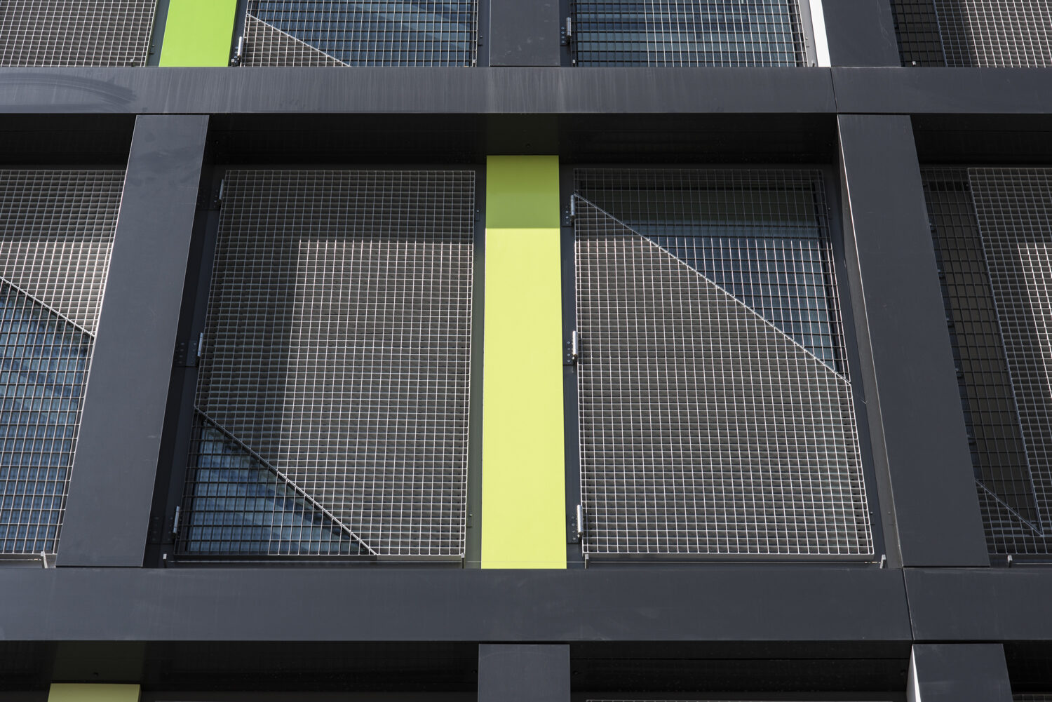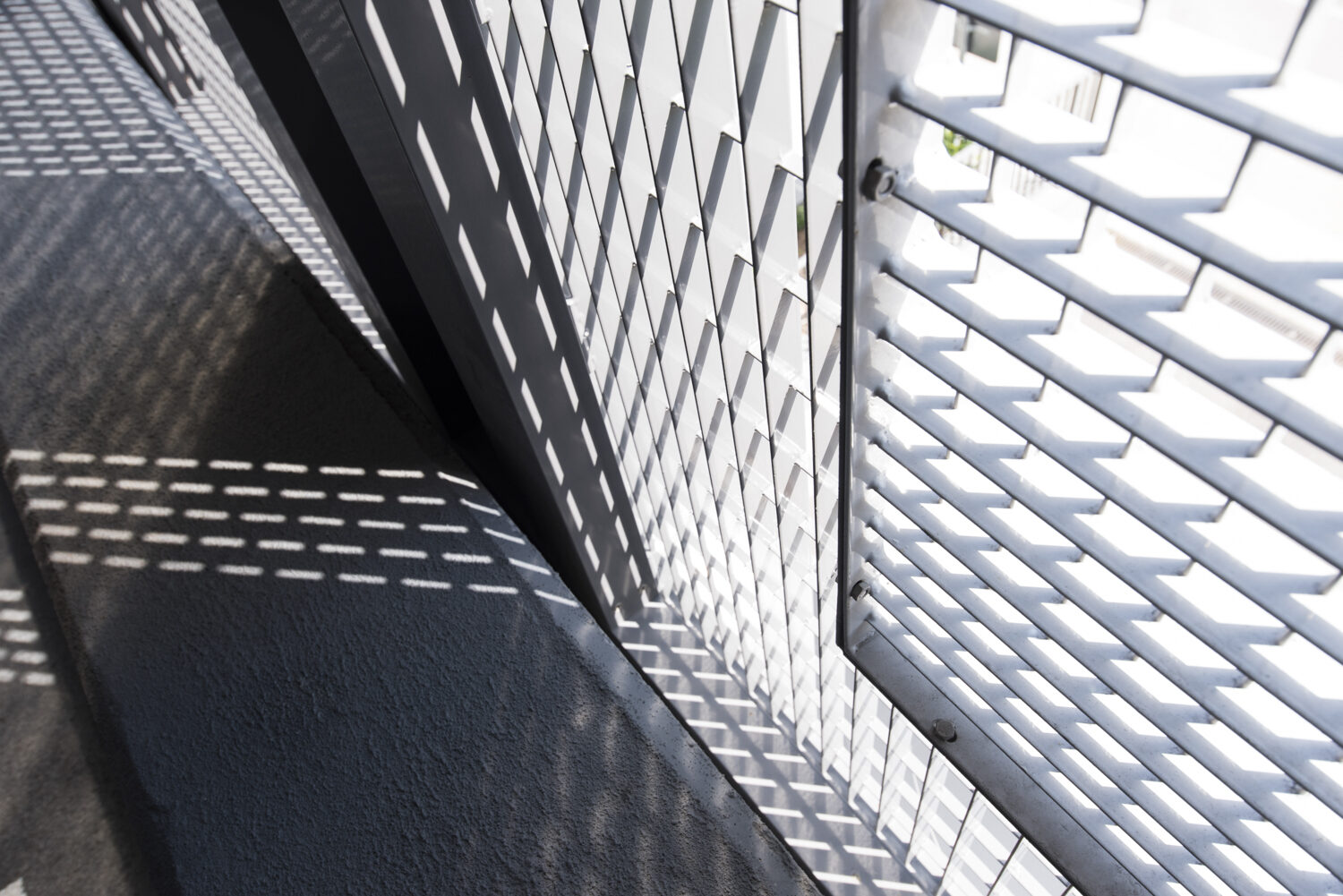 Bei diesem Projekt wurden zwei unterschiedliche Gitterrosttypen verwendet, die den Schriftzug auf „MONA“ auf der Fassade deutlich machen. Dieser Effekt wird durch zwei verschiedene Farbtöne durch die Polyester Beschichtung verstärkt. Die Gitterroste sind über Lochbleche miteinander verbunden. Jedes Bohrloch im Gitterrost, insbesondere im Bereich der Beschriftung, ist an den anderen Gitterrost angepasst.
