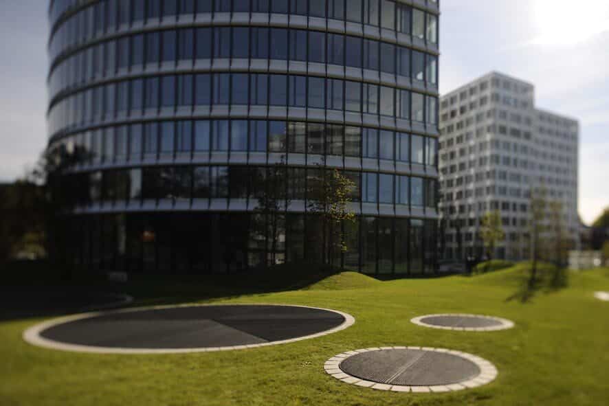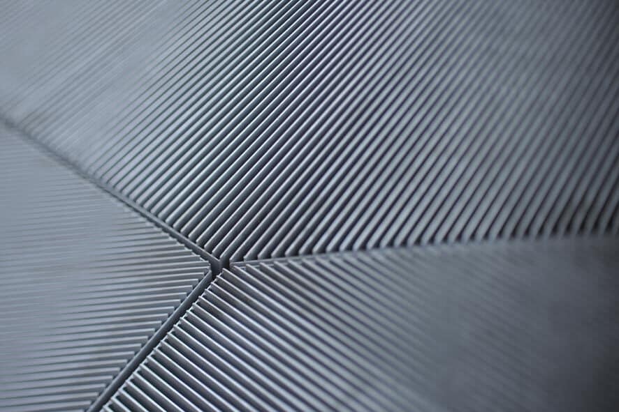 Um ein lineares Erscheinungsbild zu gewährleisten, wurden die normalerweise oberseitig angebrachten Querstäbe, von unten angeordnet